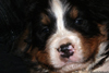 Inmiddels ben ik groter dan een gemiddelde vrouwtjes Berner Sennen en dan moet ik nog een stukje groeien. Alleen het puppyhaar op mijn oren wil maar niet weg.