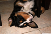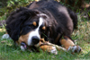 Ik verlies mijn puppy haar en krijg een echte Berner Sennen vacht. Even krabben en de plukken haar vliegen door de kamer. Dat vindt de vrouw iets minder fijn,